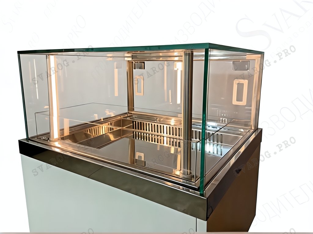 Низкотемпературная витрина Каллитропсис, может быть смонтирована рядом с витринами холодильными серии Каллитропсис , что позволяет расширить ассортимент предлагаемых Вами продуктов для продажи в едином стиле на самом высоком уровне . Серия витрин Каллитропсис , производится с низким стеклом , что по праву позволяет называться Ювелирной выкладкой - высота стеклянного купола 310 мм .